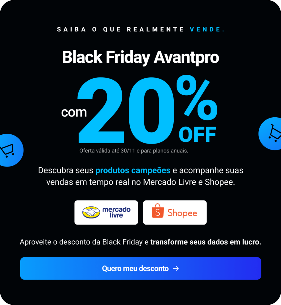Aproveite agora e descubra seus produtos campeões no Mercado Livre e Shopee.